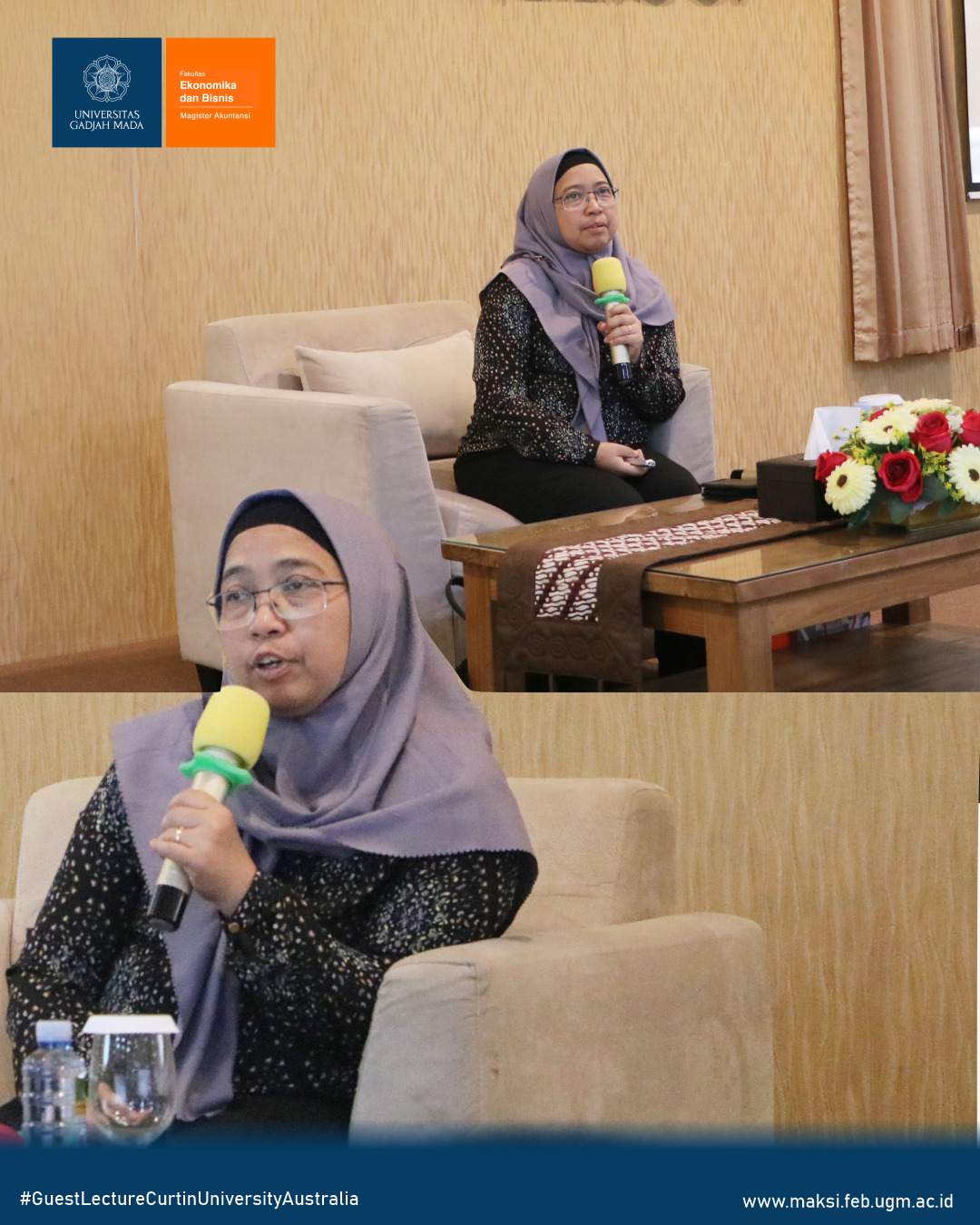 Pada kesempatan ini, Prodi MAKSI FEB UGM menghadirkan Yuni Yuningsih, CPA., M.Com., Ph.D., yang merupakan Lecturer and Researcher pada School of Accounting, Economics, and Finance, Faculty of Business and Law, Curtin University Australia. Sebagai akademisi dan peneliti yang aktif pada kajian akuntansi keberlanjutan, beliau menyampaikan materi yang berfokus pada bagaimana praktik greenwashing dapat memicu risiko reputasi yang serius bagi perusahaan, serta peran manajemen risiko dalam memitigasi potensi dampak yang ditimbulkan.